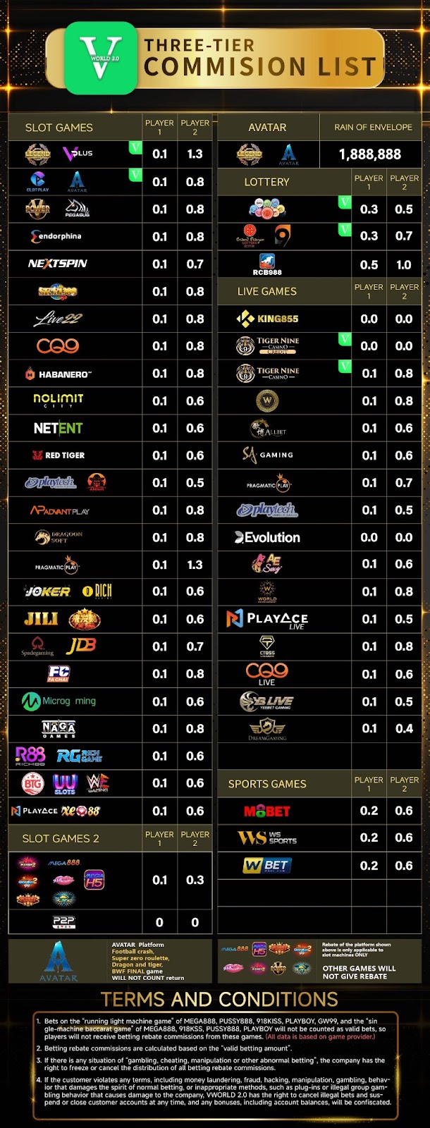 As a agent, you earn commissions based on the "valid betting amount" of your referred players. The platform offers a transparent three-tier commission structure with different rates for various game providers. Familiarize yourself with these rates to understand your earning potential.