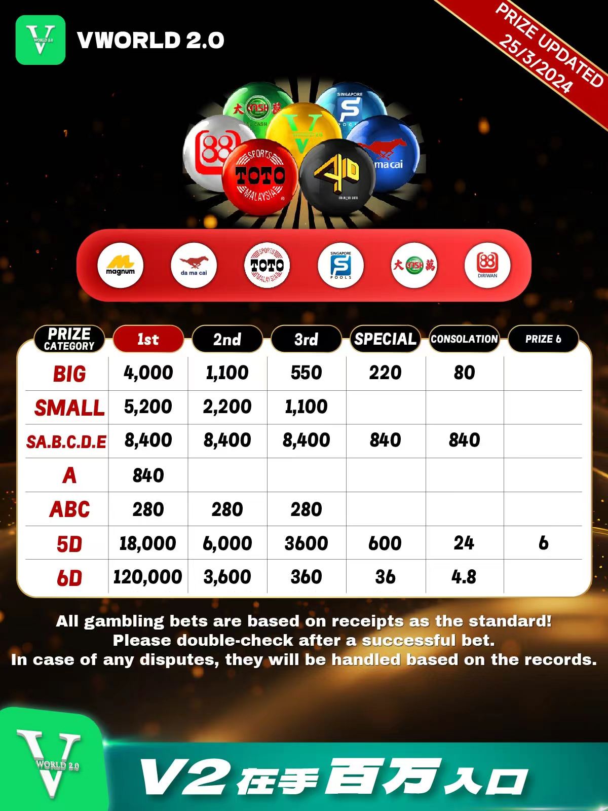 's lottery portfolio includes other games with comprehensive prize tables. These often feature Big, Small, SA.B.C.D.E, A, ABC, 5D, and 6D categories, with top prizes for 6D reaching up to 120,000 and 5D prizes up to 18,000. Always check the specific game rules on the platform for the most accurate and current payout information.