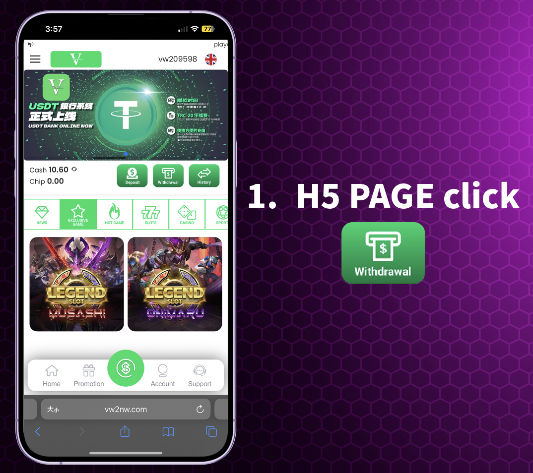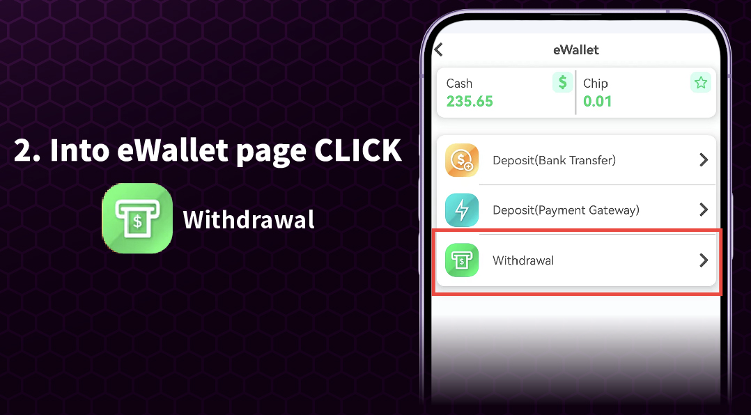 After tapping the withdrawal option, you will be directed to the eWallet or banking page within the app. Here, locate and tap on the "Withdrawal" button to proceed with your cash-out request.